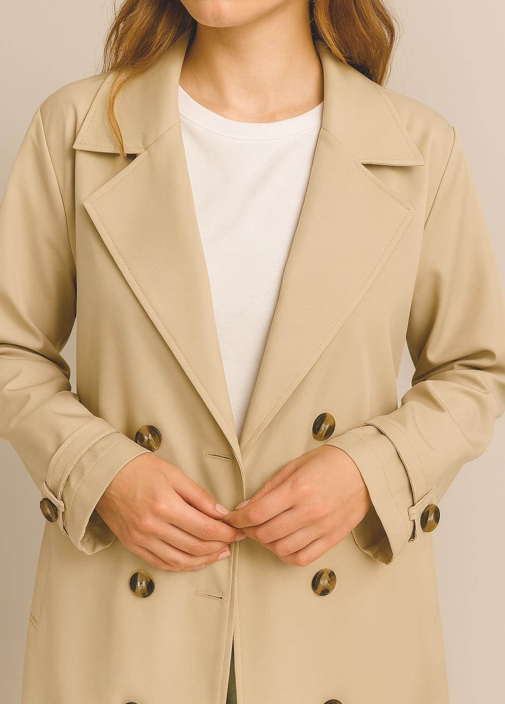 Kadın Bej Kemerli Trençkot - 2529
