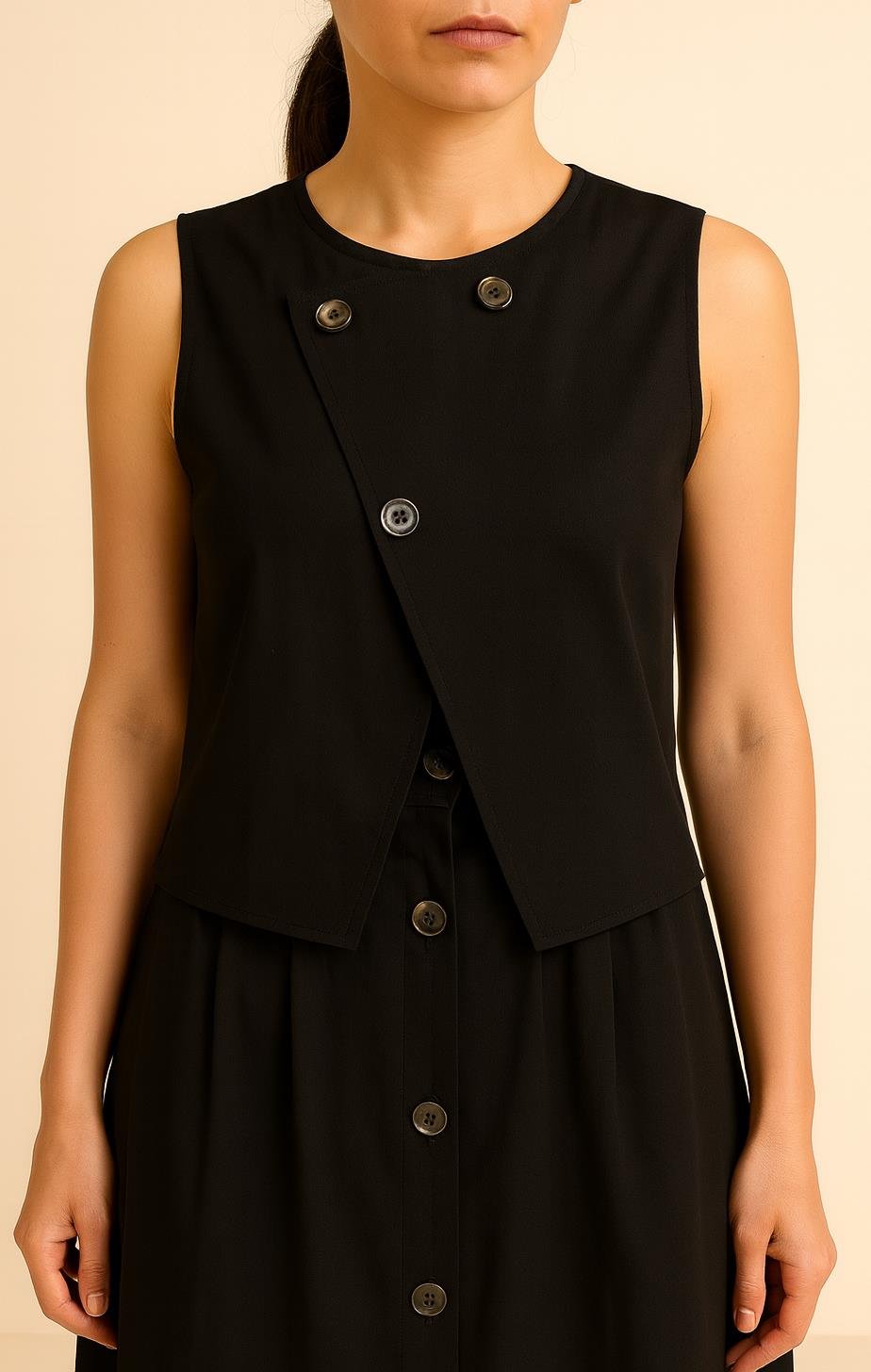 Kadın Siyah Düğmeli Yelek Etek Gabardin Takım - 2528