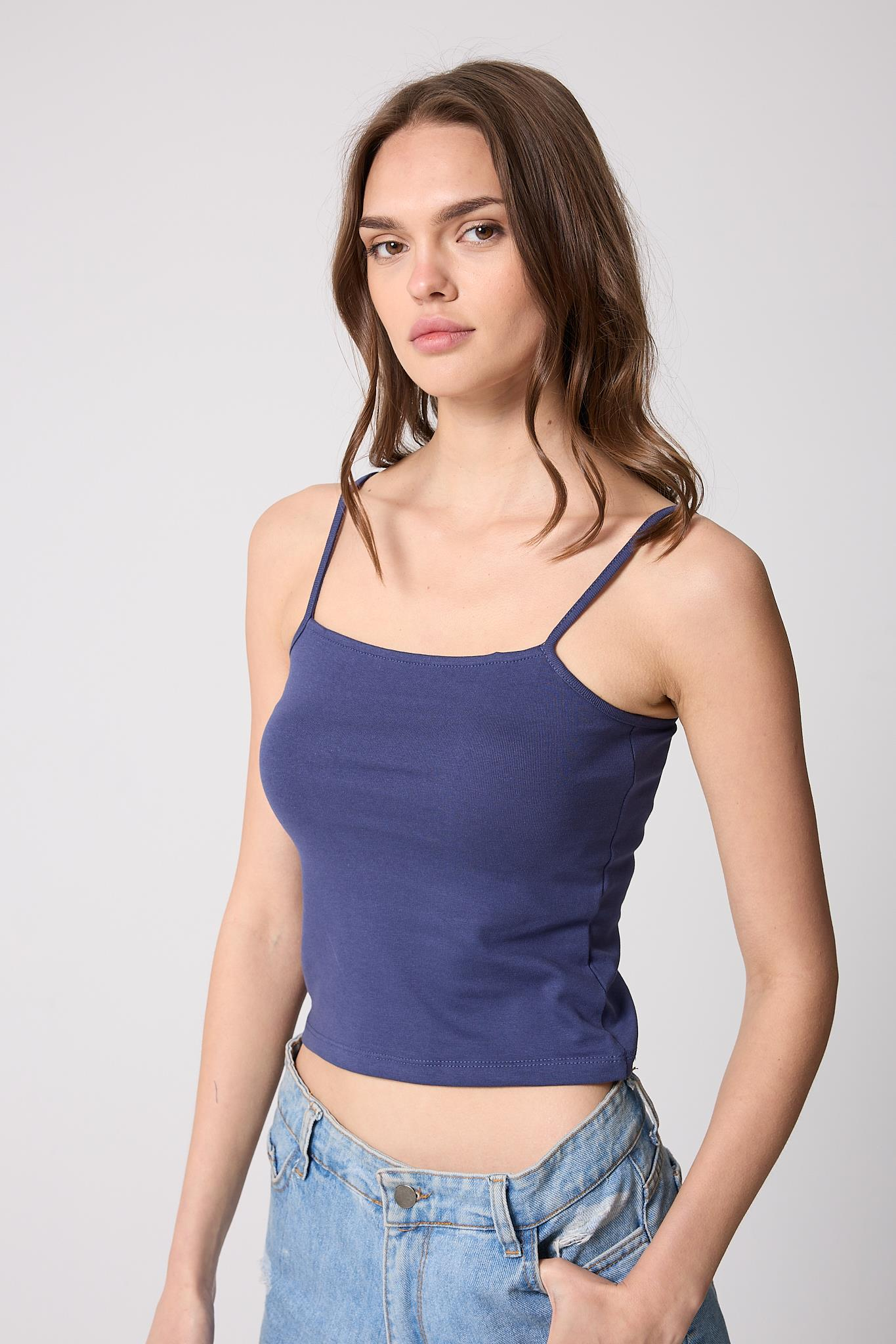 Lacivert Kadın Ince Ip Askılı Basic Crop Atlet -2466